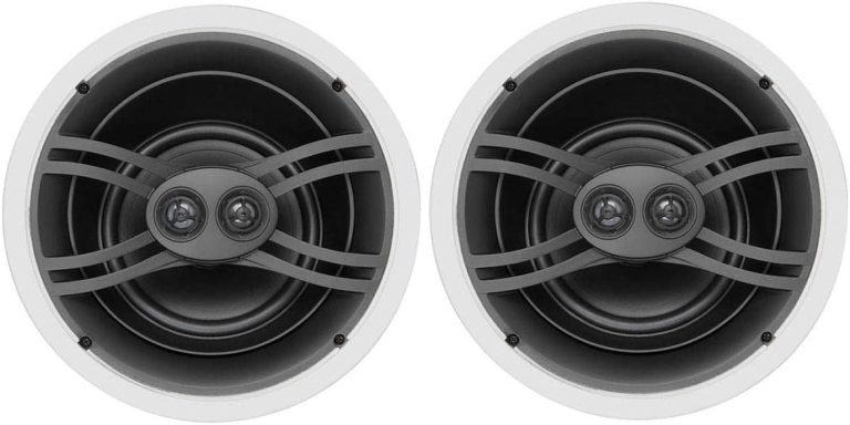 2-Way in-Ceiling Round Speaker, 9.4″ Cutout Diameter, Whole House, Home Theater, Indoor or Covered Outdoor, 8″ Woofer, 1″ Tweeter, White, Pntable, Each
