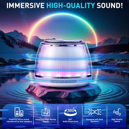 Portable Bluetooth Speaker with Lights, Night Light Wireless Magnetic Waterproof Speaker, 7 Color LED Auto-Changing,TWS,Perfect Mini Speaker for Shower, Home, Outdoor (Multicolor)