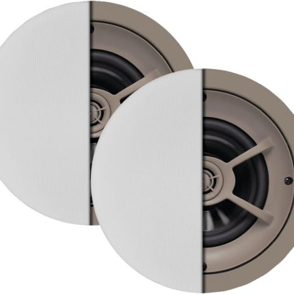 Pr of 6.5″ Graphite Woofer Ceiling Speakers; 8 Ohms Impedance; Frequy Response; 125W Power Handling; Thin-Bezel Grilles Held by